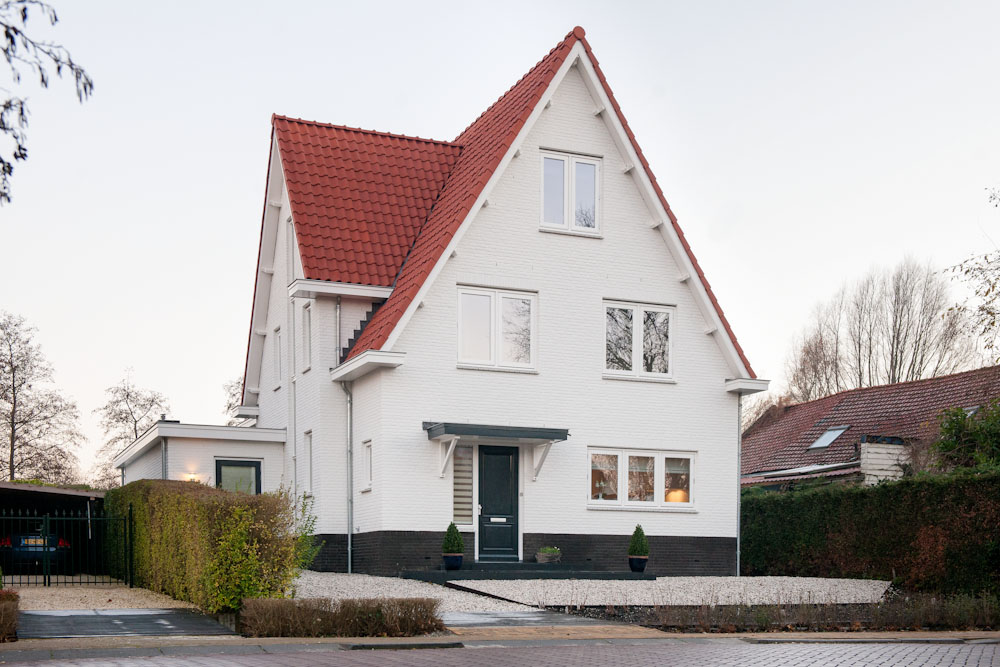 Bouwbedrijf Van der Helden is ons aangeraden door architectenbureau Atelier 3. Uit vier aanbieders hebben wij hen gekozen om de scherpe prijs en hun goede naam. Toen we het bedrijf in Ophemert bezochten, en daar een oriënterend gesprek hadden met de directie, werden we bevestigd in onze keuze. Het voelde goed! Dit zijn vriendelijke, nette en serieuze vakmensen met een schat aan ervaring. De bouw van onze woning, op de plaats waar vorig jaar nog mijn ouders woonden (en daarvoor mijn opa en oma) startte in de sneeuw in december 2012. Dat leidde aanvankelijk tot een redelijk aantal onwerkbare dagen, hoewel ook op die dagen de mannen wel vaak op de bouw aanwezig waren. Het droge voorjaar en de mooie zomerperiode pakten goed uit voor het metsel- en timmerwerk. Wij hebben de bouw op de voet gevolgd en omdat het maar 10 minuten van ons oude huis verwijderd was, waren we er bijna wekelijks. En altijd was er even tijd om te vertellen waar ze mee bezig waren of waar ze tegen aan liepen en wat ze daarop bedacht hadden. Voorbeeld hiervan zijn de koofjes in de spil van de trap die na de plaatsing van de trap, door de timmerman in zijn avonduren zijn gemaakt. Dit maakt de eiken trap in het witte trappenhuis nog mooier. Elke vier weken is er vergaderd tijdens het bouwproces. De meeste vergaderingen vonden plaats in de keet op de bouwplaats. Ter plekke werden keuzemogelijkheden voorgelegd, kleine wijzigingen doorgesproken en uitgevoerd werk getoond. Buiten de bouwvergaderingen is veel overlegd via email en telefoon. Altijd is snel en doeltreffend gereageerd door projectleiding en de verantwoordelijke vakmensen. Niet alles liep direct zoals het moest zijn, maar het uiteindelijke resultaat is schitterend. Er is een huis ontstaan zoals wij dat voor ogen hadden. Ruim, licht en passend in deze landelijke omgeving. Prachtig is de combinatie van witte muren, antracietkleurige deuren en oranje pannen. We wonen er met heel veel plezier. De zolderkamers en de badkamer met daarin het balkenwerk duidelijk zichtbaar, zijn zelfs nog mooier uitgepakt dan we hadden voorzien. En ook voor de schoorsteen krijgen we regelmatig een compliment! Waar wij zeer over te spreken zijn, is de ‘nazorg’ van Van der Helden en hun onderaannemers. Als er iets hapert, wordt daarop direct gereageerd en staat een dag later een vakman voor de deur.